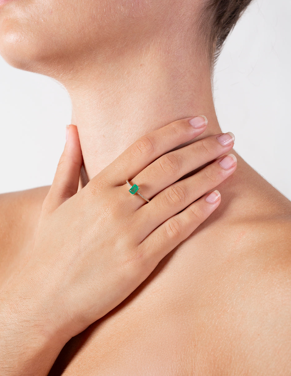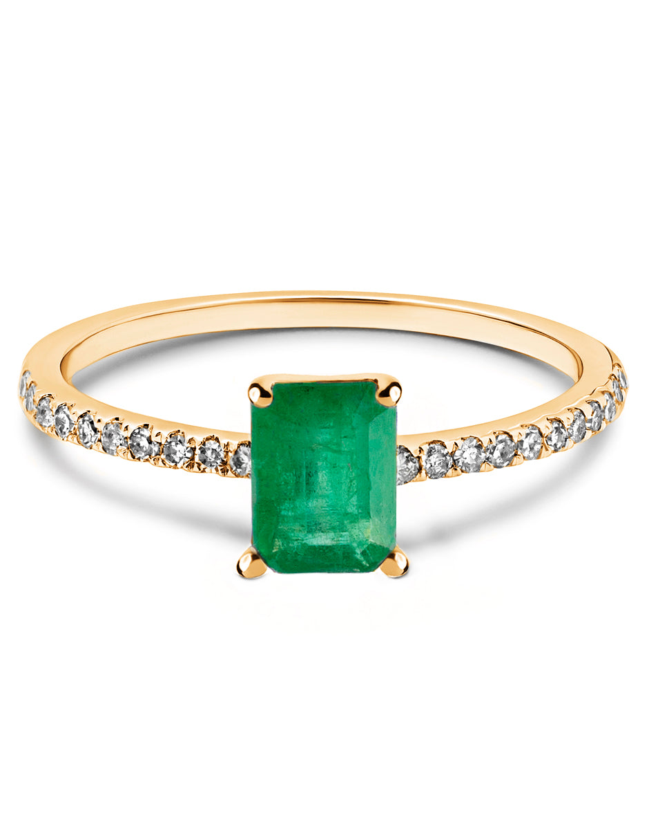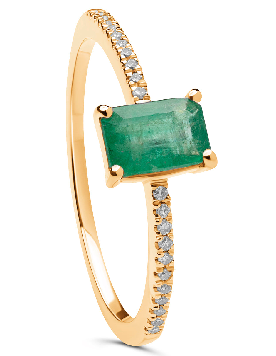 - 22 diamantes en talla brillante y 1 Esmeralda