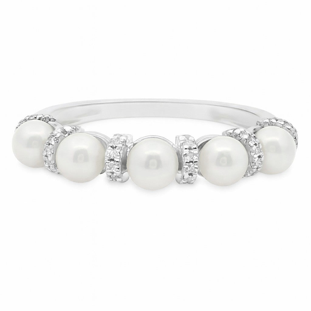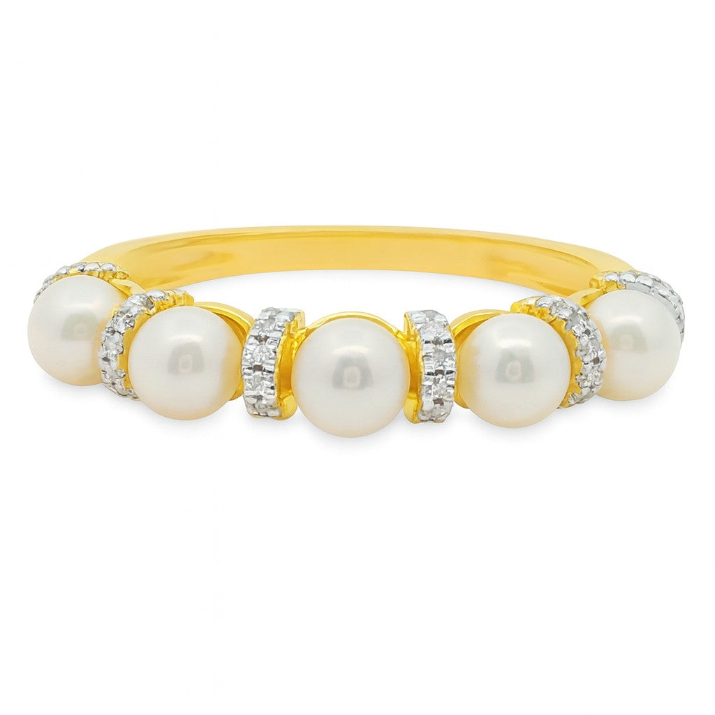 SORTIJA 18KT 5 PERLAS 48 BRILLANTES