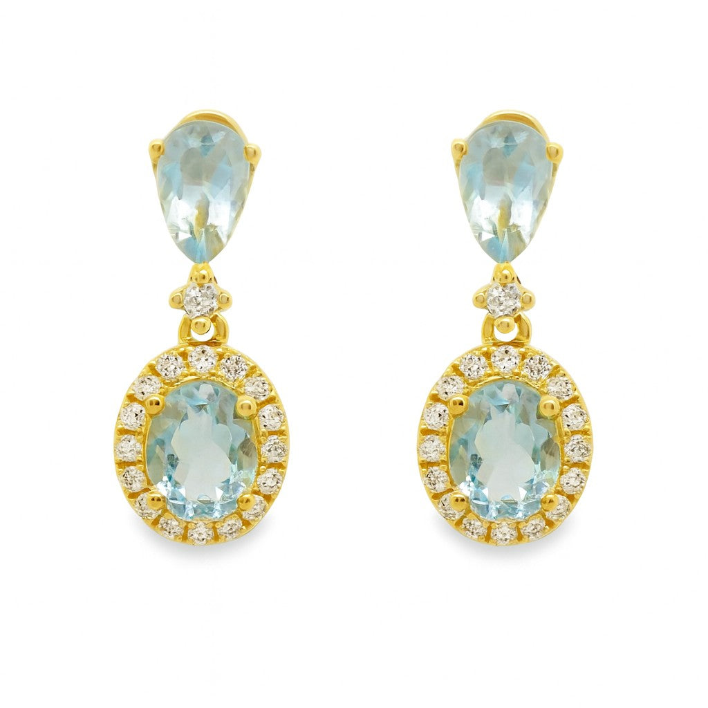 PENDIENTES 18KT 38 BRILLANTES 4 AGUAMARINAS