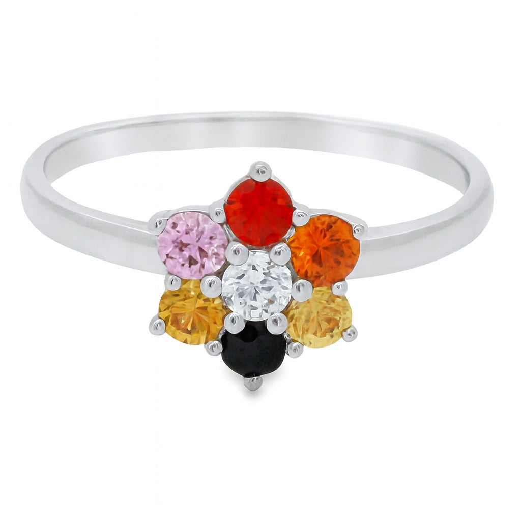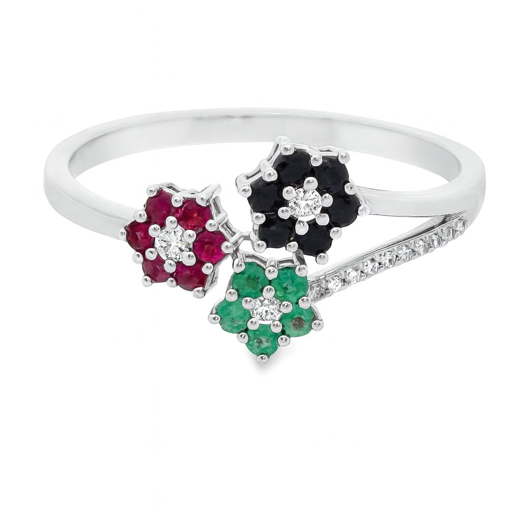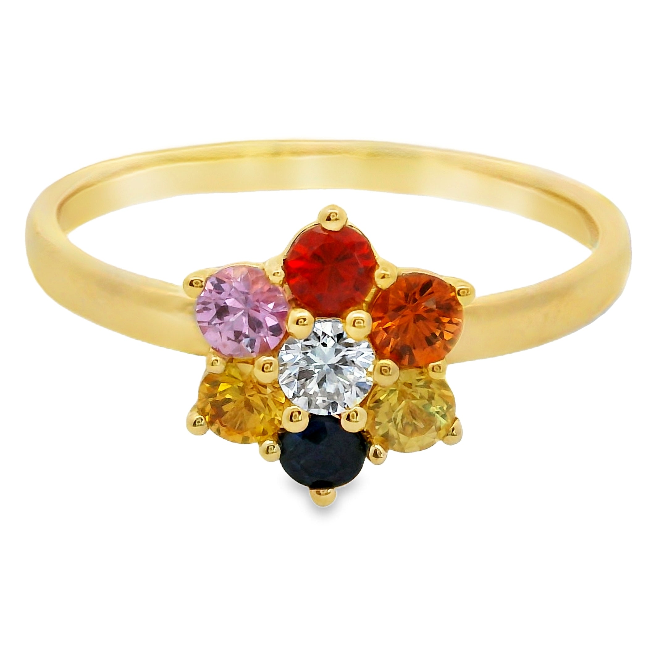 ANILLO 18KT 1 BRILLANTE Y 6 PIEDRAS FINAS