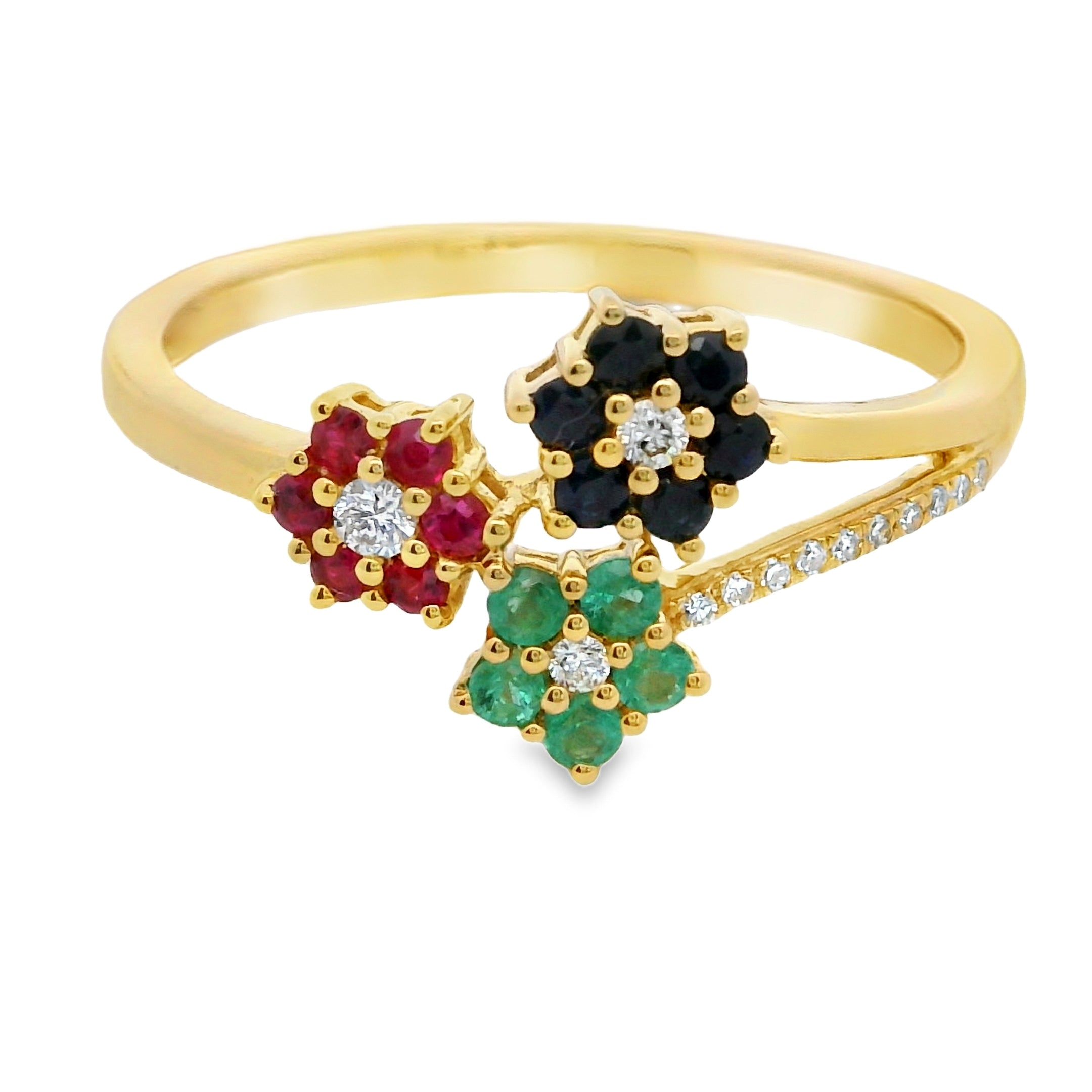 ANILLO 18KT 3 BRILLANTE 14 PIEDRAS FINAS