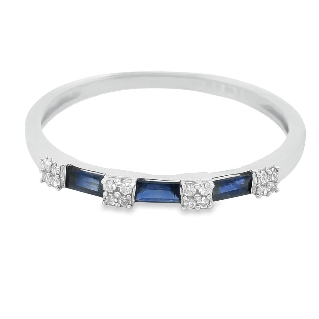 ANILLO 18KT 16 BRILLANTES 3 ZAFIROS BAGUETTES